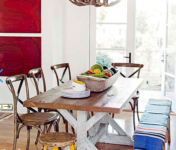 色彩豐富的條紋攤子,將它捆綁在長條座椅上,為木質座椅做個緩沖帶,提升坐感的同時,靚麗的色彩也是美好裝飾物。