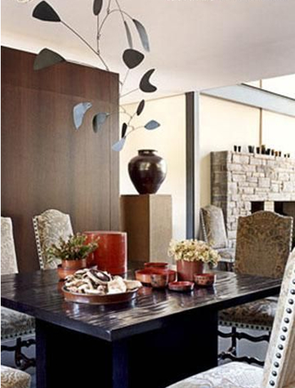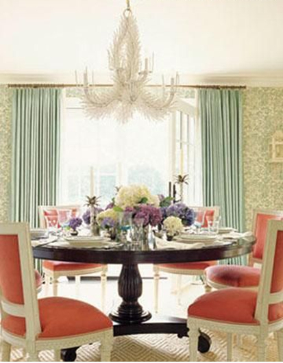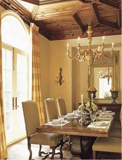 這個(gè)餐廳的視覺焦點(diǎn)莫過于其漂亮的木雕天花板,用木條勾勒出對(duì)稱的圖形,帶有柔美曲線的餐椅迎合空間的整體風(fēng)格,美式鄉(xiāng)村不一定很敦厚很粗獷,也可以很柔情很優(yōu)雅。