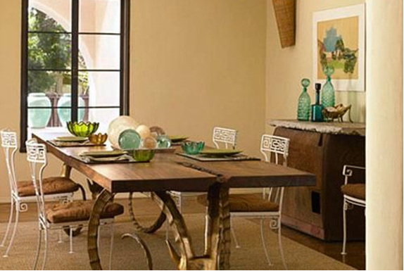 泥土的黃色調(diào)搭配艷麗花朵加以點(diǎn)綴,無需繁雜的設(shè)計(jì)就會(huì)給餐廳增添一種舒適溫馨的感覺。而鄉(xiāng)村風(fēng)格所帶來的自由感正適合那些不喜歡被形式化的東西所束縛的人們。
