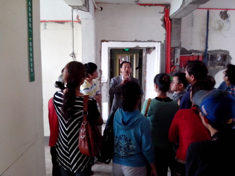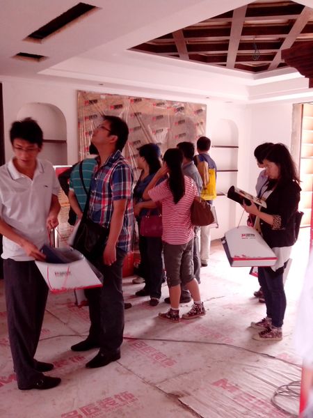 (6)考察裝修公司施工質量??梢韵蚪哟藛T提出參觀施工現(xiàn)場的要求。正規(guī)裝修公司的施工現(xiàn)場工具齊備,工作人員施工有序,施工后的地面平整,上下水通暢,家具對縫整齊,五金件質量上乘,門窗開合簡便順手,油漆面光滑細膩等。去施工現(xiàn)場還有一個好處就是可借機考察裝修公司使用的材料質量如何。