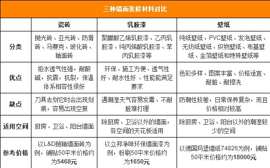 三種不同的建材各有其優(yōu)缺點(diǎn)與適用的空間,針對不同的空間選擇適當(dāng)?shù)慕ú?,也可針對個(gè)人的需求與經(jīng)濟(jì)實(shí)力來挑選。從表格可以看到,一般來說乳膠漆的價(jià)格相對于壁紙與瓷磚是較為實(shí)惠的,而壁紙是價(jià)格較高的建材。